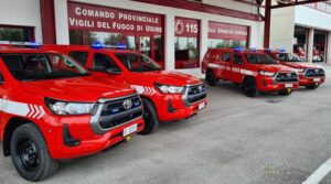 I quattro veicoli dei Vigili del fuoco acquistati con finanziamento regionale
