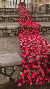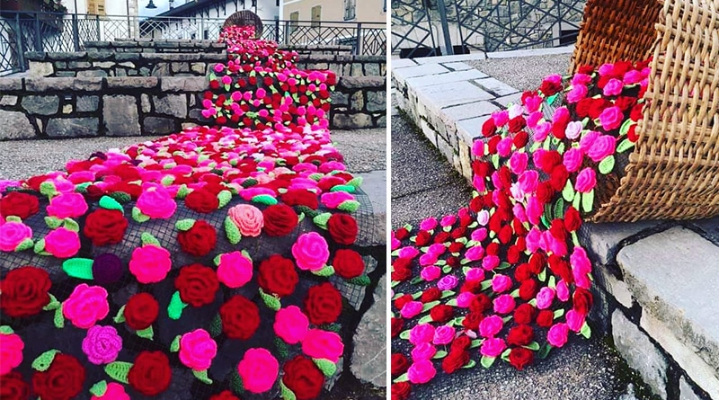 Una cascata di 1600 rose ad uncinetto a Forni di Sopra