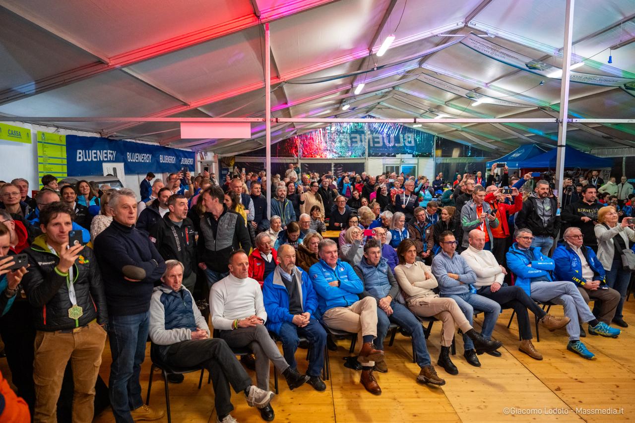 Dopo la cerimonia di premiazione della staffetta, un PalaBluenergy gremito, cuore pulsante delle premiazioni e dei momenti istituzionali della manifestazione, ha accolto circa mille persone per una serata di spettacolo ed emozioni. Un’ora intensa, durante la quale le medaglie olimpiche hanno condiviso ricordi, aneddoti e applausi, accompagnate dall’esibizione del cantante Francesco Filizzola & The Riviera’s. Gli ospiti, provenienti da ogni parte del mondo, hanno celebrato con entusiasmo i campioni, increduli di trovarsi davanti a una parte così significativa della storia del fondo italiano.