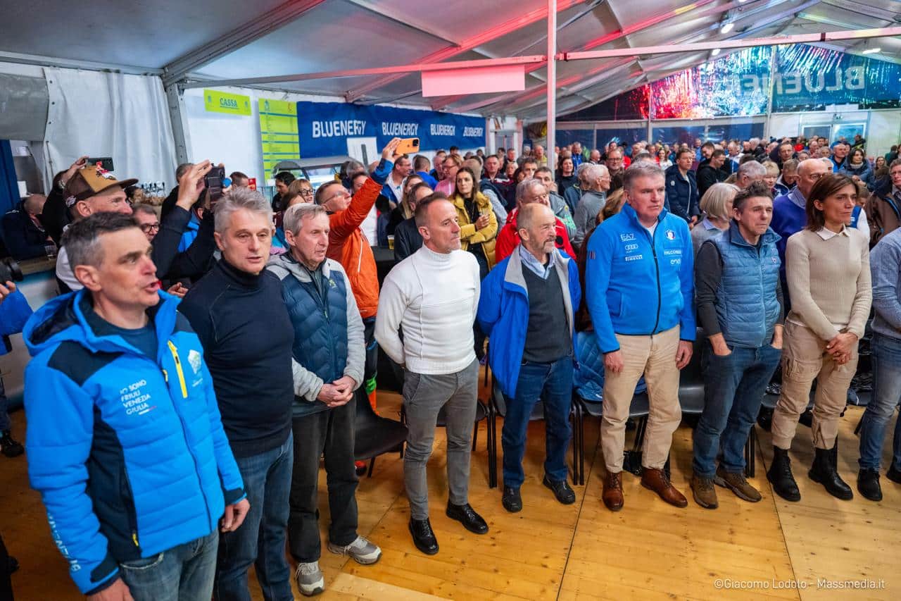 La festa è poi proseguita in serata con l’evento speciale “Aspettando le Olimpiadi” avviata dall’inno di Mameli, interpretato dalla Banda di Sappada unita a quella di Forni Avoltri, e che ha visto protagonisti, oltre agli atleti scesi in pista al mattino, anche Gabriella Paruzzi, Maurilio De Zolt, Giorgio Vanzetta e Giuseppe Puliè. Sul palco si è così idealmente ricomposta la leggendaria staffetta olimpica di Lillehammer 1994, regalando al pubblico un momento unico e irripetibile.