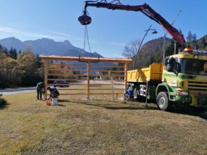 Sono incominciati i lavori di posa in opera dei nuovi essicatoi per il foraggio che saranno installati a Camporosso (incrocio bar Lory e rotonda bar Dawit), a Tarvisio (rotonda di Pitacco), Cave del Predil e Fusine in Valromana.