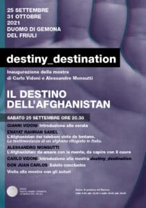 Sarà presente anche Enayat Rahman Sahel, uno tra i migranti fotografati e intervistati per la mostra, un afghano rifugiato già da alcuni anni in Italia e residente in Friuli con la sua famiglia, che porterà la sua testimonianza relativa al modo in cui vive e vede la condizione del suo Paese, nel quale risiedono ancora molti dei suoi parenti.