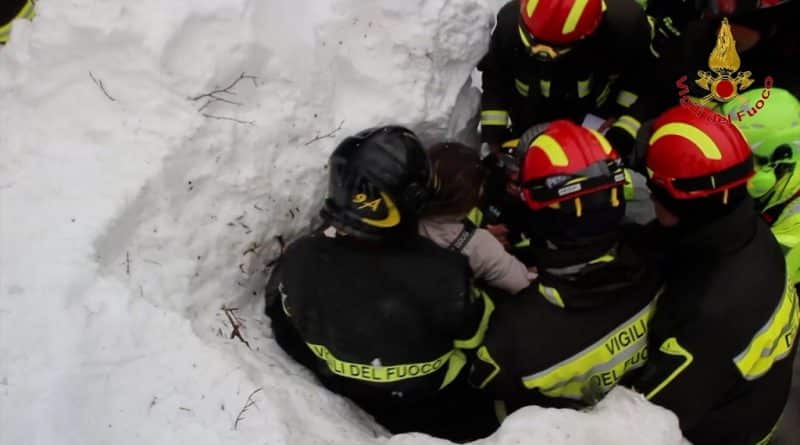 Altre persone sono state individuate vive sotto le macerie dell’hotel Rigopiano dopo quelle salvate in mattinata. Lo riferiscono i vigili del fuoco che ancora non hanno raggiunto i superstiti. Si tratterebbe di un gruppo di cinque persone, anche se il numero è ancora da confermare. Nelle ore precedenti sono state sei  le persone estratte dopo 43 ore sotto la valanga che ha travolto l’hotel di Farindola (Pescara). Il primo contatto poco dopo le 11. I superstiti sono tre adulti e tre bambini.