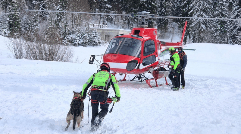Sul posto sono arrivati tre elicotteri, l’elisoccorso regionale, l’elicottero della Protezione Civile, il.Suem di Pieve di Cadore e tre unità cinofile.