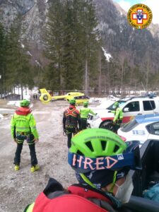 L’equipe medica e il tecnico di elisoccorso dell’elisoccorso FVG hanno perlustrato la zona dall’alto e individuato subito alla base del canale le giacche dei due travolti, entrambi parzialmente disseppelliti.