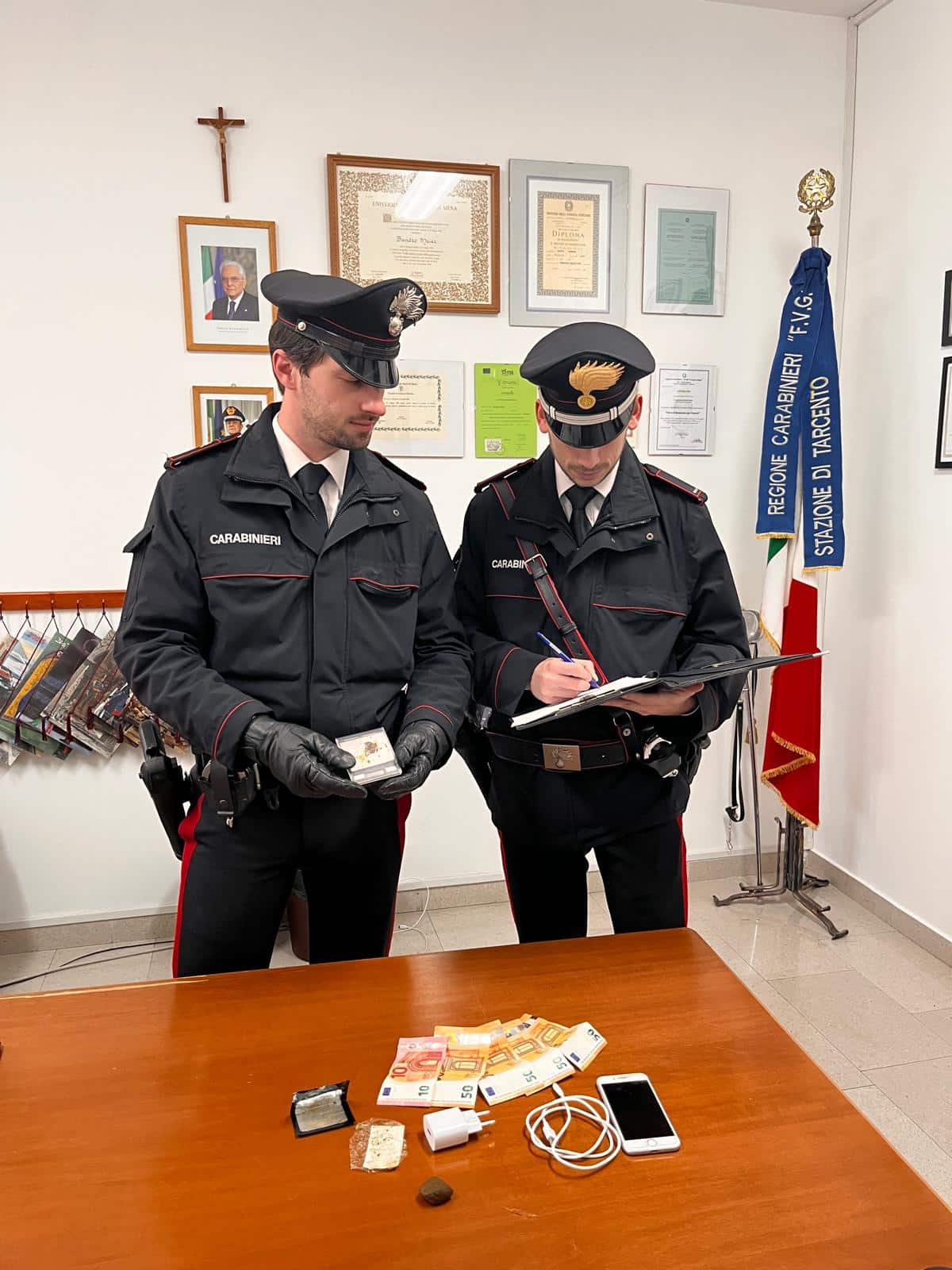 La successiva perquisizione ha confermato i sospetti dei militari. Il ventenne è stato trovato in possesso di un involucro contenente nove grammi di hashish, accompagnato da un bilancino di precisione e da diverso materiale idoneo al confezionamento delle dosi. Oltre alla droga, i Carabinieri hanno rinvenuto la somma in contanti di 210 euro, suddivisa in banconote di piccolo taglio e ritenuta provento dell’attività illecita. Tutto il materiale rinvenuto e il denaro sono stati posti sotto sequestro dalle autorità.