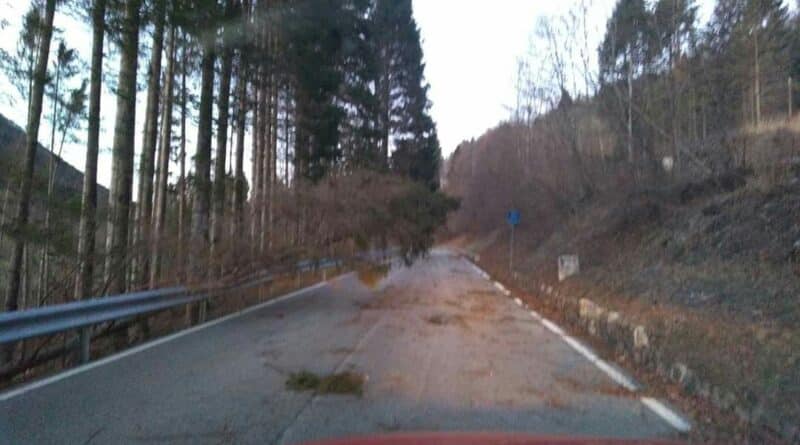 A causa del vento forte che ha spirato durante la notte in Carnia, si segnalano alberi abbattuti e caduti sulla sede stradale della ex Provinciale 1 tra Verzegnis e Sella Chianzutan.
