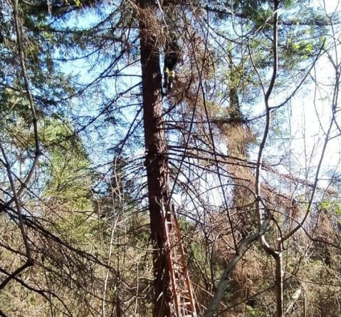 VIDEO – Verzegnis, i Vigili del Fuoco salvano un gatto bloccato su un abete a 20 metri di altezza