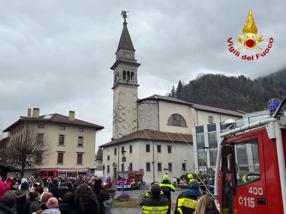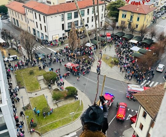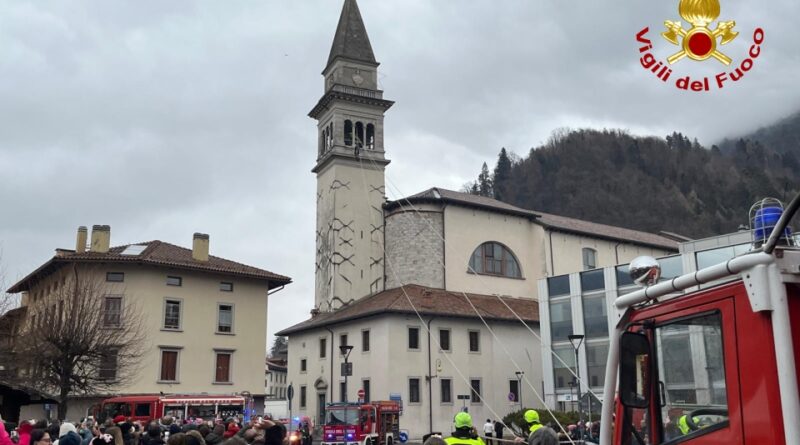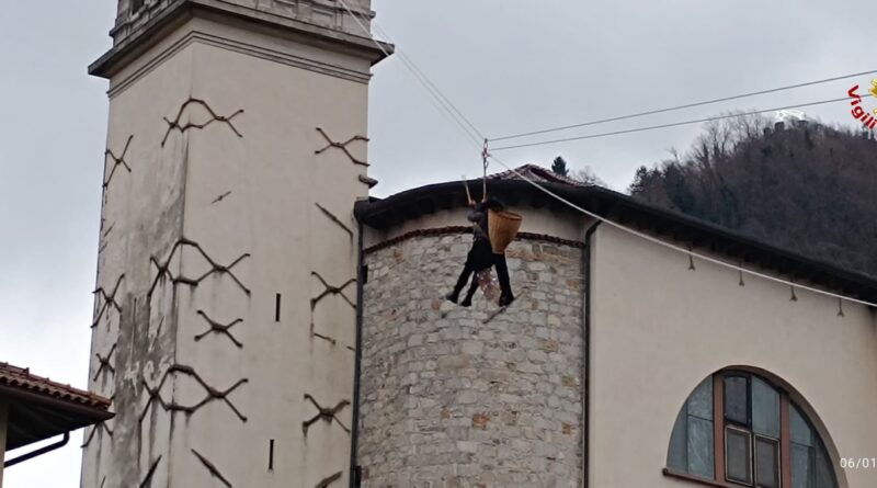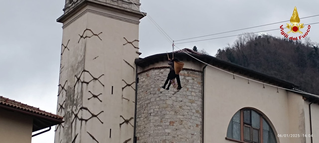 VIDEO – A Tolmezzo i Vigili del fuoco “assistono” la calata della Befana