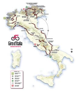 La volata a Padova (Fiera di Primiero-Padova 166 km) e la tappa di media difficoltà di Sappada (154 km da Mortegliano con Passo Duron e Sella Valcalda prima del finale – la tappa transita da Peonis dove morì Ottavio Bottecchia) anticipano la resa dei conti della Alpago-Bassano del Grappa (175 km con due scalate del Monte Grappa da Semonzo che vide l’attacco vittorioso di Nibali nel 2010 e la crono vinta da Quintana nel 2014). Grande Arrivo a Roma con il circuito passerella nella Città Eterna.