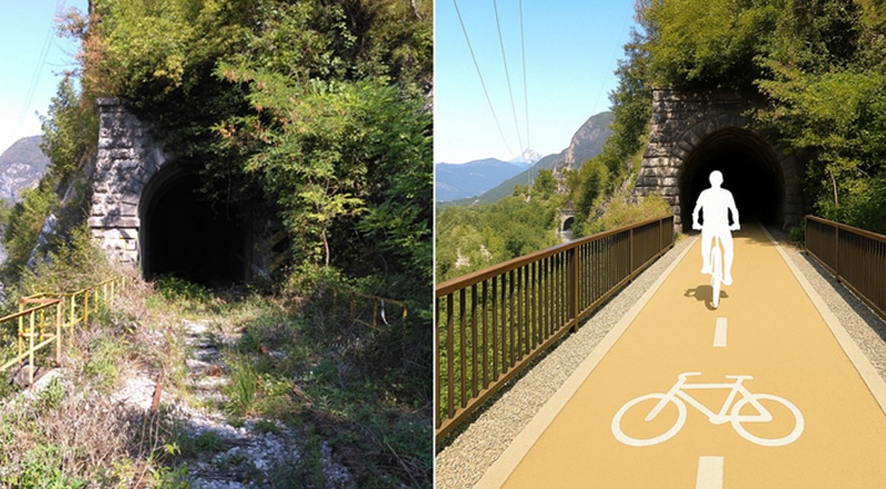 Oltre al tracciato ciclabile che seguirà il sedime ferroviario dismesso, diventando un vero e proprio percorso culturale della memoria e testimonianza dell’operosità ereditata dal passato, il progetto prevede il risanamento e la messa in sicurezza di 38 manufatti, fra sottopassi, ponti, ponticelli e gallerie.