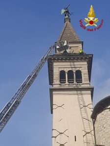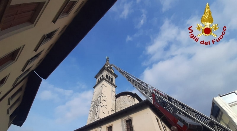 Oggi la squadra dei Vigili del fuoco di Tolmezzo, a seguito di una richiesta della locale Amministrazione comunale, è intervenuta presso il campanile del Duomo per la messa in sicurezza di un manufatto metallico riproducente la stella cometa che, posto in cima al campanile a circa 40 metri di altezza, era pericolante.