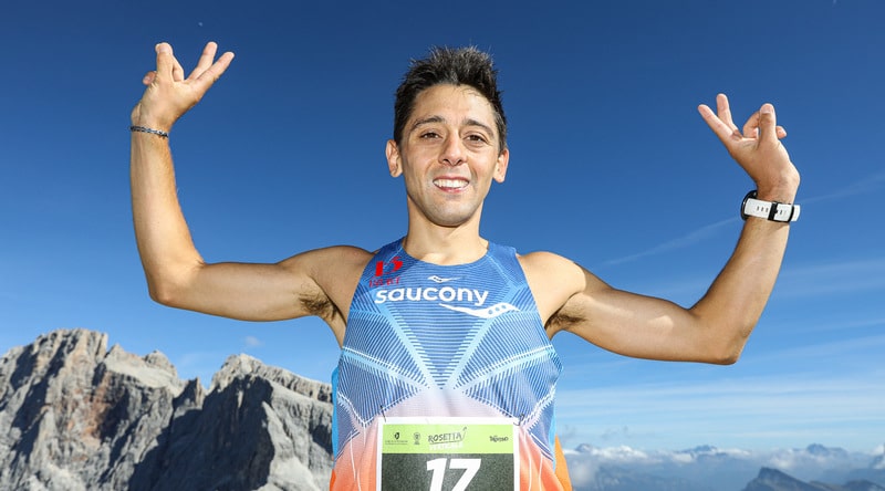 «Mi sono alzato con il piglio giusto, poi sole, temperatura ideale – racconta Moia –. Mi sentivo molto bene e volevo costruire una prestazione importante alla Rosetta Verticale, una gara che mi piace moltissimo, e ci sono riuscito, battendo il record. Sono partito in quarta batteria e avevo i riferimenti degli avversari. Nei pressi del rifugio Colverde ho agganciato e superato Rigo e da quel momento ho accelerato superando anche Gardener e proseguendo con un gran passo. Il cronometro dell’orologio mi segnalava anche un gran tempo ed ho dato il tutto per tutto nella seconda parte. Sono doppiamente soddisfatto perché questa gara per me è magica, per la tipologia del percorso, che non è un vertical tradizionale, e per il contesto paesaggistico strepitoso. Per me è stata la gara perfetta».