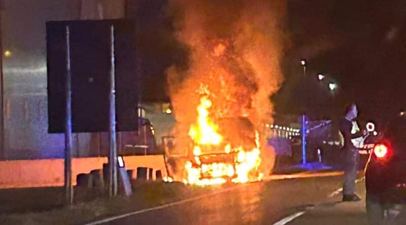 Paurosa la scena che si è presentata agli altri automobilisti in transito, attorno alle ore 18, i quali hanno allertato subito i soccorsi. E’ stata inviata sul posto una squadra dei pompieri di Gemona del Friuli per spegnere le fiamme che hanno divorato completamente il mezzo.