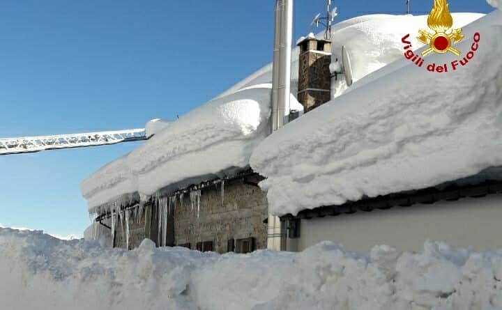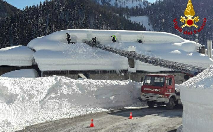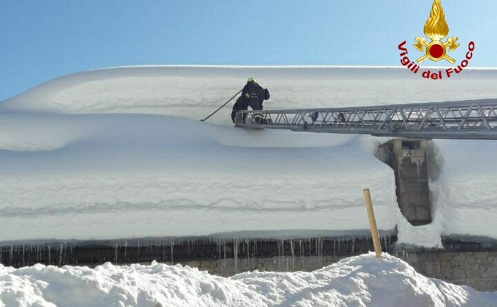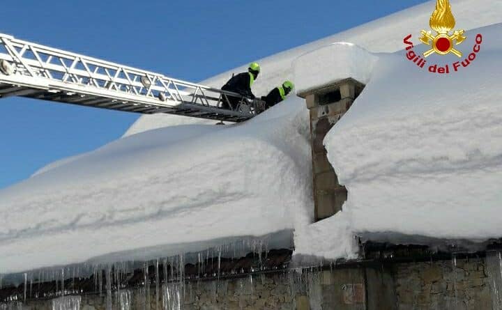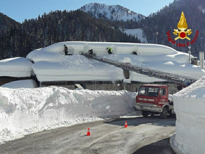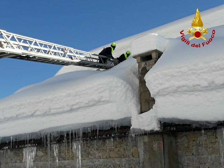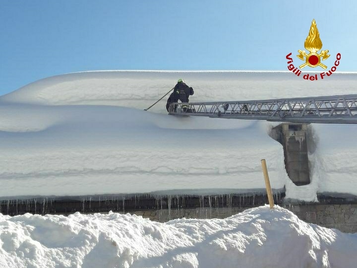 L’operazione si è resa necessaria al fine di evitare che il peso della neve accumulata faccia collassare la copertura del fabbricato.