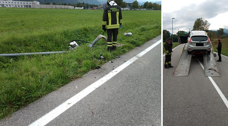 Una donna della zona, alla guida di una Ford Fiesta, ha perso il controllo del mezzo, abbattendo un palo dell’illuminazione e finendo nel piccolo fosso che delimita la strada.