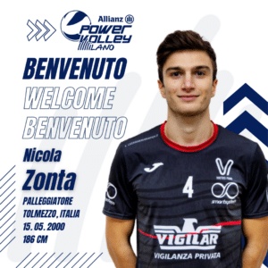 Allianz Milano ha scelto il suo secondo regista, il vice di Paolo Porro sarà Nicola Zonta, classe 2000, 186 centimetri di altezza, reduce da una stagione esaltante in maglia Vigilar Fano. Il giovane di Tolmezzo vanta già una tripla esperienza in serie cadetta (Club Italia, Bergamo e Castellana Grotte) e un importante curriculum nel giovanile: nel 2017-18 è stato campione d’Italia under 19 con Segrate, miglior palleggiatore alle finali under 18 sempre con Segrate e nel 2019 ha conquistato un argento con la nazionale al mondiale del Barhein.
