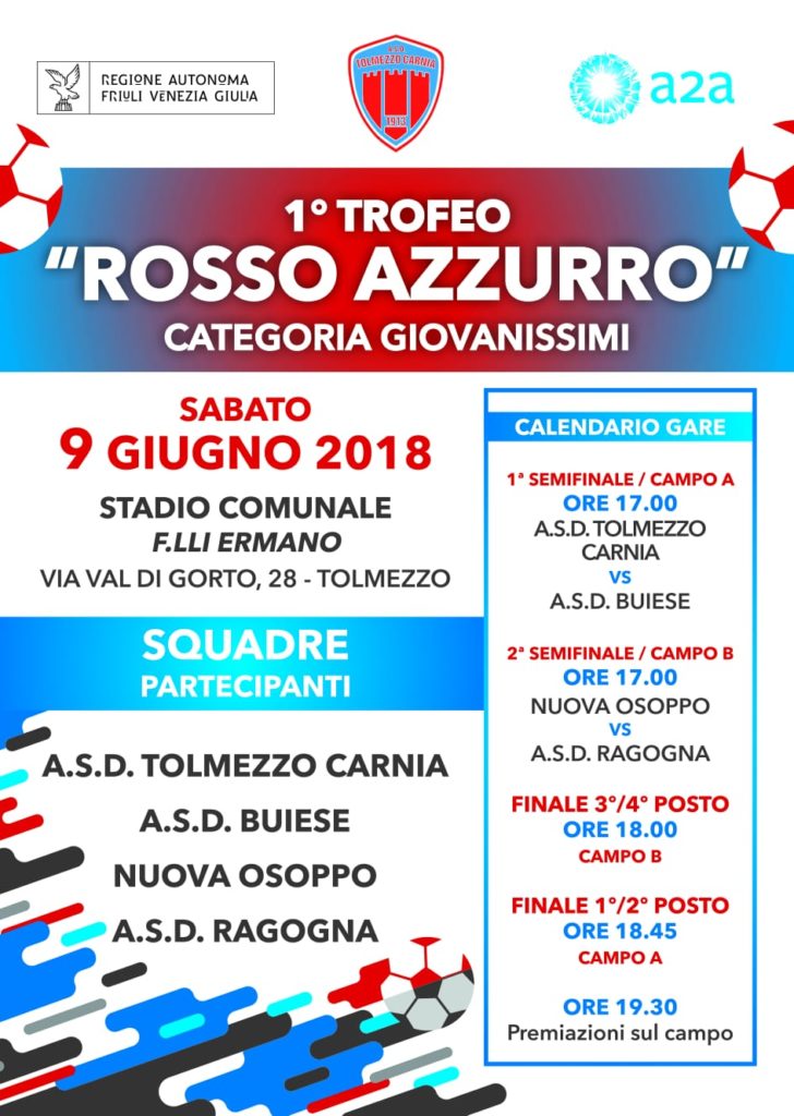 Sabato l’appuntamento riguarderà la categoria Giovanissimi (annate 2003-2004) con il 1° Trofeo RossoAzzurro, al quale parteciperanno Bujese, Nuova Osoppo, Ragogna e, naturalmente, i padroni di casa del Tolmezzo Carnia. Inizio gare alle ore 17, con finale prevista alle 18,45.